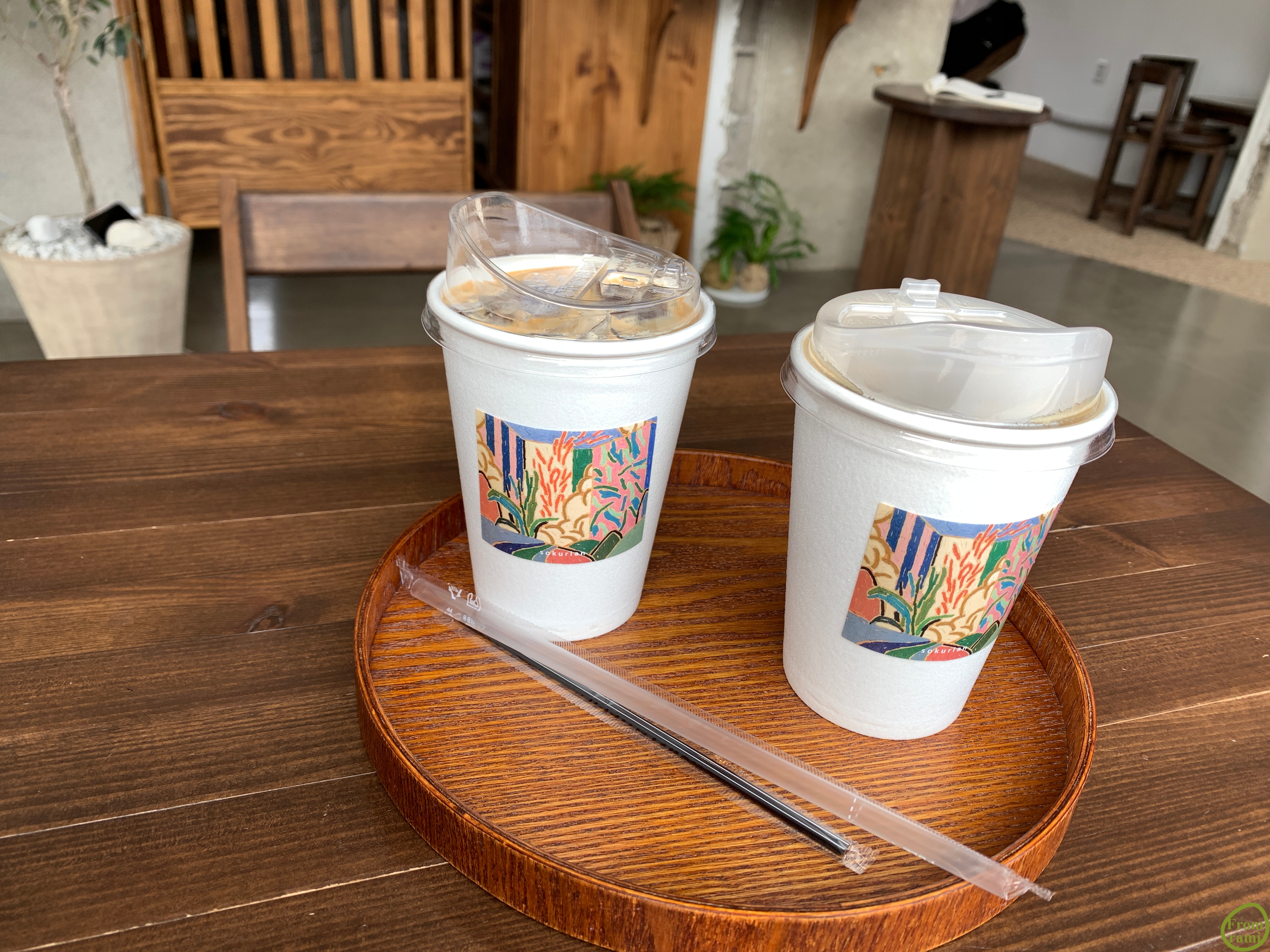 따뜻한 아메리카노와 아이스 아메리카노. 작은 것 하나까지 신경 쓴 게 보이는 카페였어요. 커피잔에 붙은 그림은 카페 주인분께서 직접 그린 작품일까요?