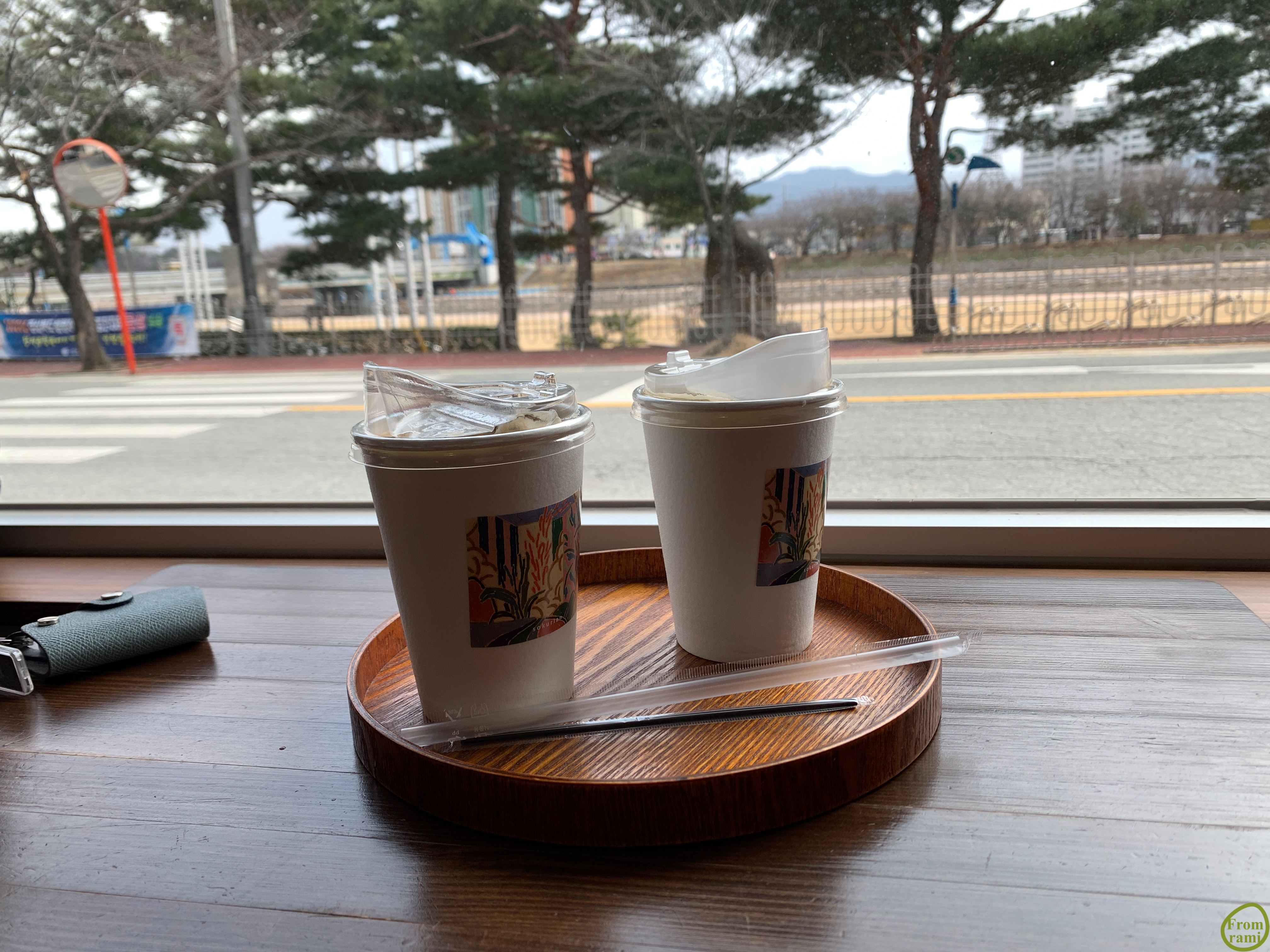 따뜻한 아메리카노와 아이스 아메리카노. 작은 것 하나까지 신경 쓴 게 보이는 카페였어요. 커피잔에 붙은 그림은 카페 주인분께서 직접 그린 작품일까요?