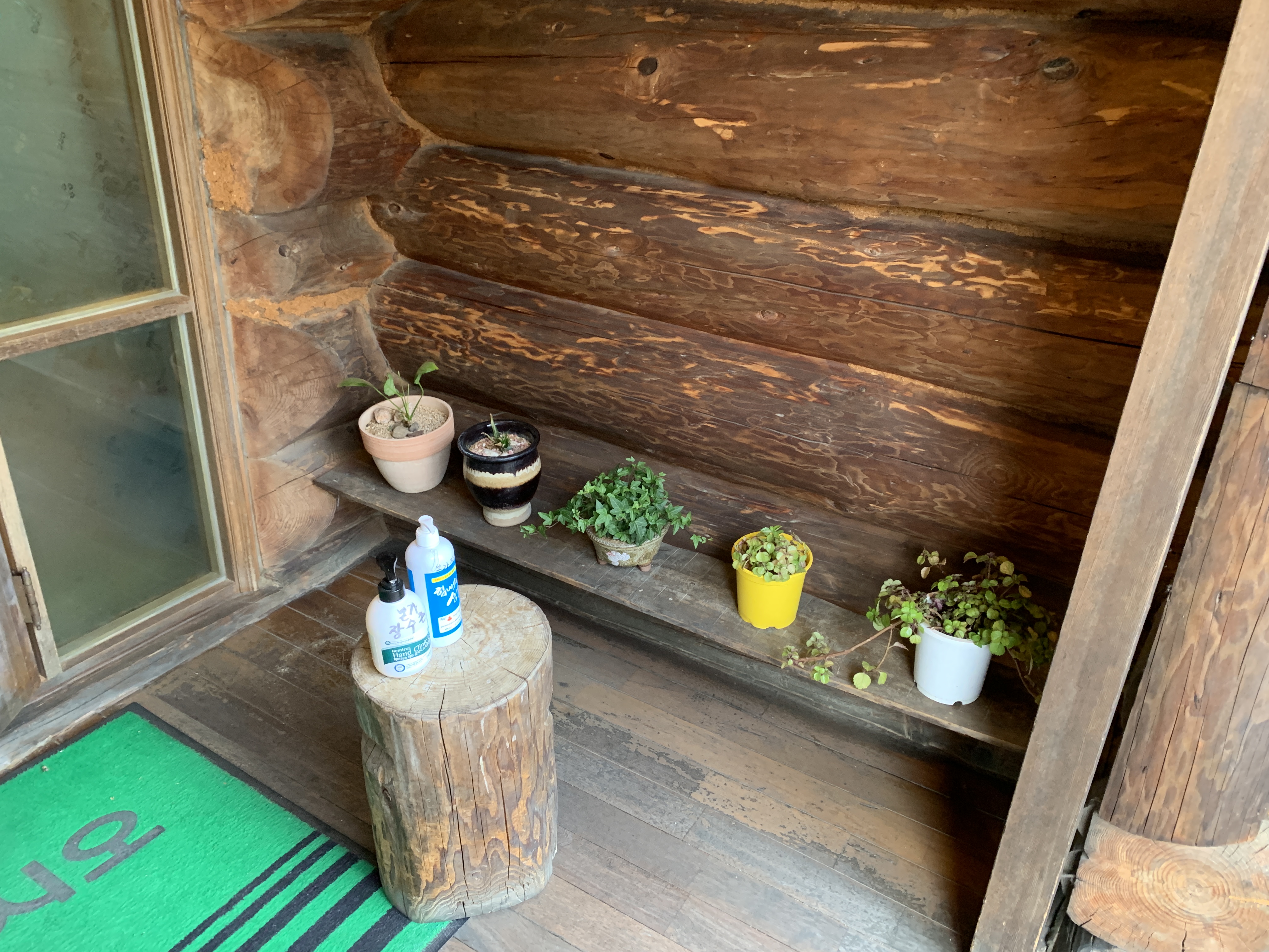 잠시 입구에 앉아 통나무집 구경도 해보구요~ㅎㅎ