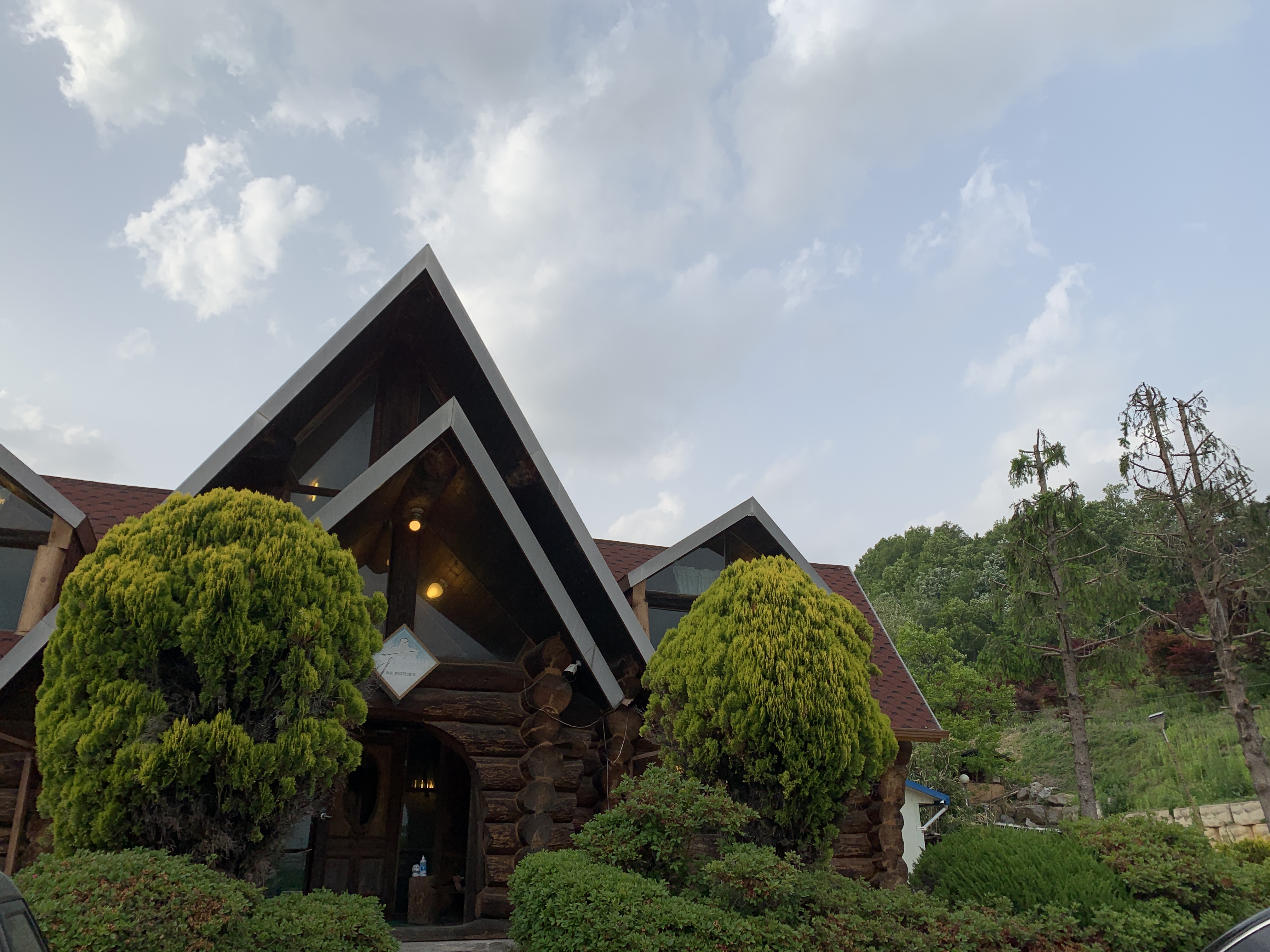 잠시 입구에 앉아 통나무집 구경도 해보구요~ㅎㅎ