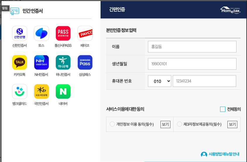 2. 간편 인증서 로그인하기