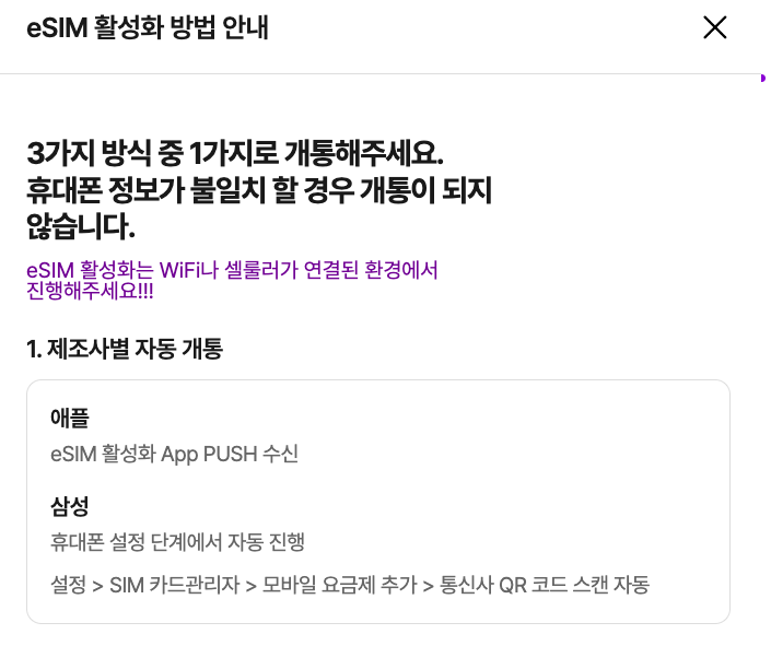 해외에서는 유심 or 이심 모두 가입은 가능하나 개통이 어렵다고 해요.