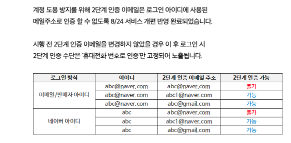 2단계 인증 이메일을 변경하지 않으면, 안전한 로그인을 위해 2단계 인증 이메일로 인증이 불가합니다.