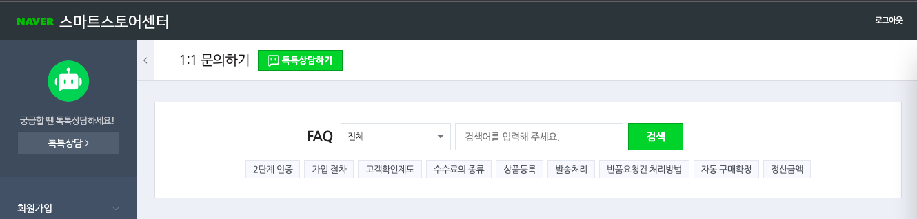1. 스마트스토어 센터 1:1 문의하기
